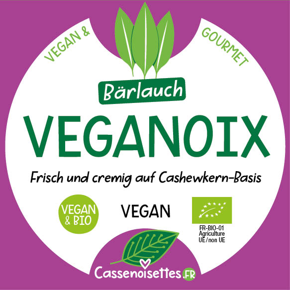 Cashewkerne* (nicht EU) 61,5g, Wasser 61g, Lupinensamen, Maniokstärke, Knoblauchpulver, Zwiebelpulver, Guérande-Salz (Frankreich), Kokosöl, Bärlauch