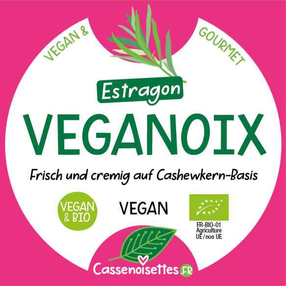 Cashewkerne* (nicht EU) 61,5g, Wasser 61g, Lupinensamen, Maniokstärke, Knoblauchpulver, Zwiebelpulver, Guérande-Salz (Frankreich), Kokosöl, Estragon